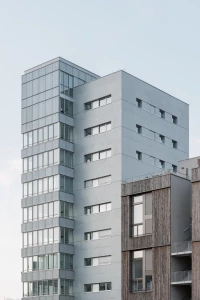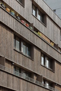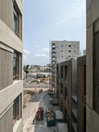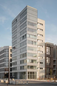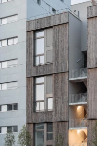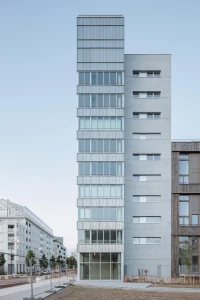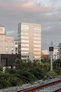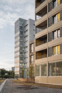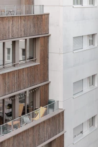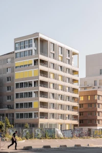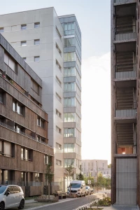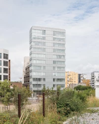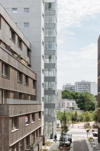 Le lot Alix du quartier République sur l’île de Nantes constitue la proue du nouveau quartier avec une mixité typologique assumée. Trois ensembles accolés proposent trois manières d’habiter : la Stèle offre sur 10 étages des salons triple orientés, le bâtiment Intermédiaire superpose 3 maisons duplex en construction bois, et le bâtiment Panoramique offre de généreux salons d’angle sur loggia.