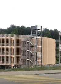 Cet immeuble mixte alliant parking-relais d’entrée de ville et Caserne de Pompiers sur la commune de Marly en Suisse propose de considérer le nouvel édifice comme une structure capable et réversible en bureaux ou logements. Les deux programmes sont traités dans la même dynamique courbe, accompagnant la géométrie de la parcelle et offrant une terminaison urbaine à cette zone industrielle souffrant du mitage d’immeubles techniques solitaires.