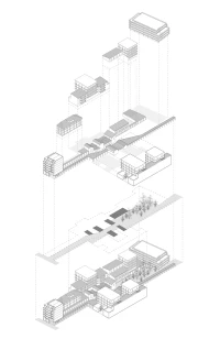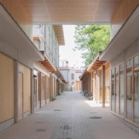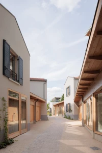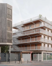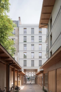 En plein cœur de Montreuil, au pied du Métro Robespierre, une nouvelle venelle est créée, en traversée d’îlot, articulant 2 000 m² de surfaces artisanales liées à l’Économie Sociale et Solidaire, en construction bois, avec 115 logements mixtes. Emmaüs et la Collecterie sont les principaux acteurs du Village du Réemploi: brocante, café culturel, upcycling, réparation de vélos… Autour de ce socle fédérateur est agrégée une grande mixité de programmes, avec des logements sociaux, des logements privés, des logements monoparentaux et, en bout de parcelle, un vaste ensemble de logements en Coliving. Au centre de l’ensemble, un grand jardin ouvert sur la ville, à vocation potagère et pédagogique.