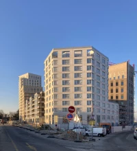 L'immeuble de logements développe 100% de logements traversants au sein d’un immeuble fin marqué par de généreux bow-windows donnant sur loggia.