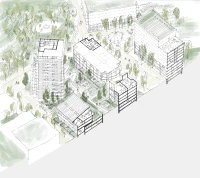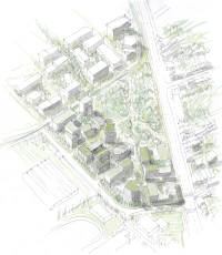 Ce projet urbain considère la phase 3 du quartier de la Cartoucherie à Toulouse. 900 logements, équipements et commerces sont prévus autour d’un parc urbain. Le projet développe un parking silo réversible coiffé de logements collectifs, ainsi que plusieurs îlots aux volumétries épannelées, où le stationnement est systématiquement absorbé par le traitement paysager des îlots. Chaque immeuble est conçu en fonction d’une manière d’habiter et un mode constructif spécifique, mettant en œuvre construction biosourcée et brique de réemploi.