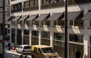 Le projet de commissariat constitue le socle d’un immeuble mixte (logements, commissariat, hôtel) à l’entrée du quartier Beaujon à Paris 8ème. L’immeuble présente une façade en pierre massive de Saint Maximin. L’aménagement intérieur met en valeur les matériaux bruts et nobles : affirmation de la structure béton laissée nue, cloisonnements en panneau bois, inox des meubles, sol en terrazzo coulé.