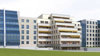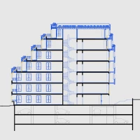 Tirant parti du plan existant en T et sans modifier la structure pré existante, le projet propose un ensemble de logements à bow-windows coté Nord et en gradins côté Sud. La rationalité constructive de l’ensemble (noyaux et façades porteuses, plateaux libres en dalles pré-contraintes) permet une grande liberté d'aménagement.